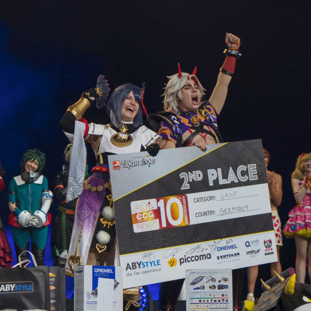 El segundo premio, al igual que en la categoría individual, fue para Alemania, representada por Yumee y Klav con cosplays de Kujou Sara y Arataki Itto del también videojuego online Genshin Impact.